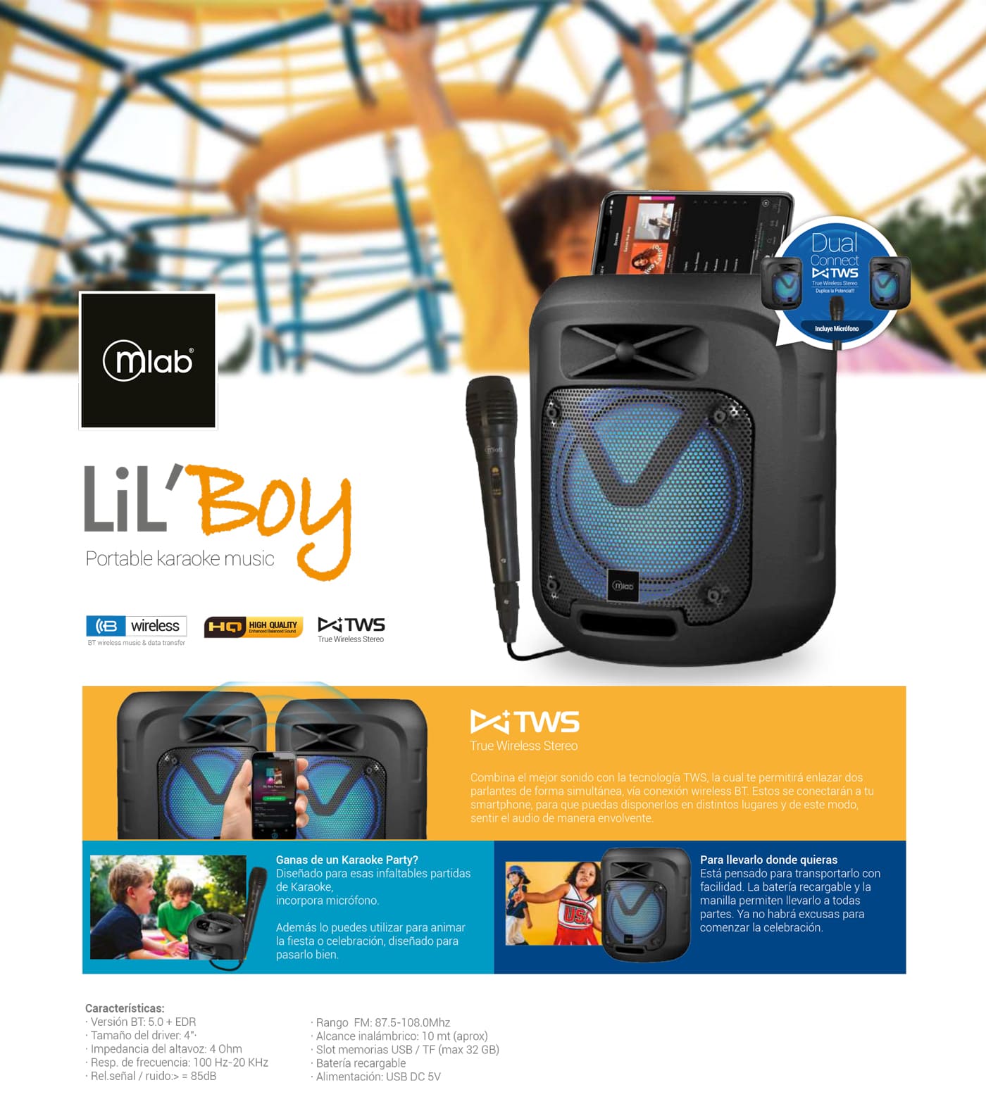 • Slot memorias USB / TF (max 32 GB)