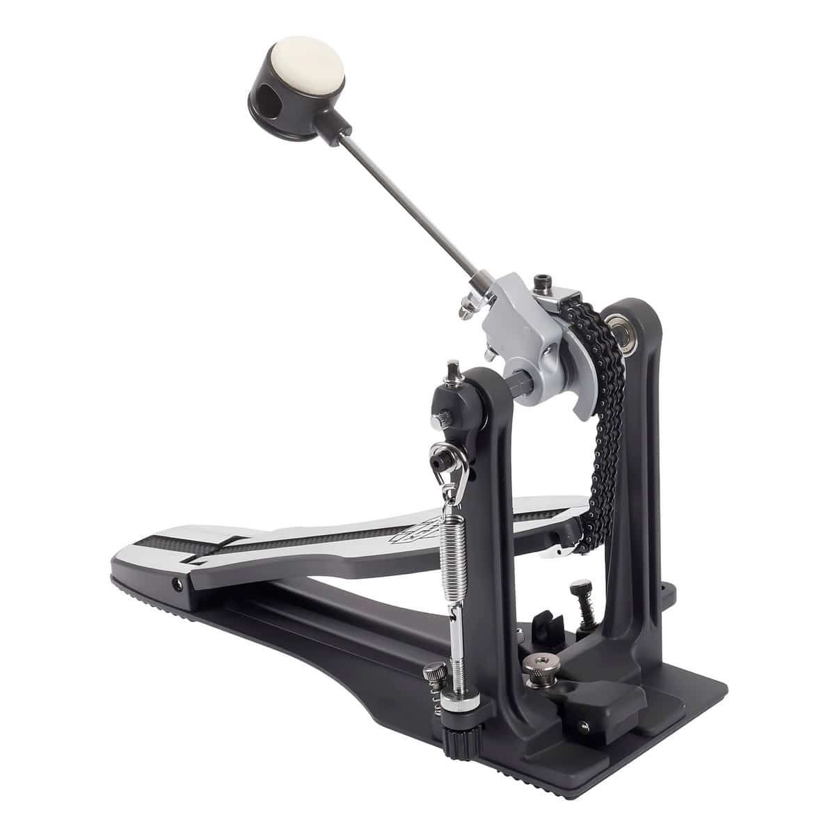 El pedal Mapex P600 brinda a los bateristas una excelente relación entre costo y rendimiento. Incluye funciones que generalmente no son comunes en su rango de precio, como una cadena doble para una mayor durabilidad, un batidor de doble cara y, sobre todo, una base sólida que aporta estabilidad al pedal y facilita tocar con mayor precisión y rapidez.