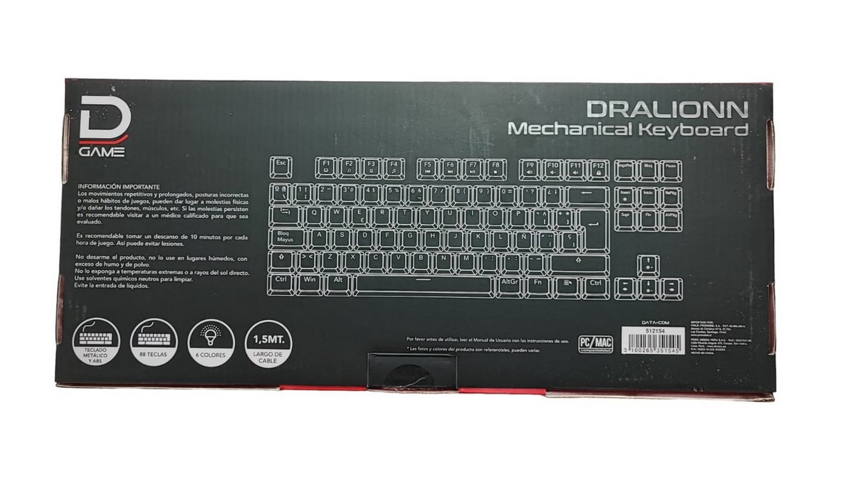 Excelente teclado gamer mecánico, retroiluminado RGB, consta de 88 teclas desmontables, full anti ghosting, totalmente compatible con Windows/IOS, conexion USB, y ajuste de angulo entre 2 niveles. Lo necesario para elevar el nivel de tu juego.