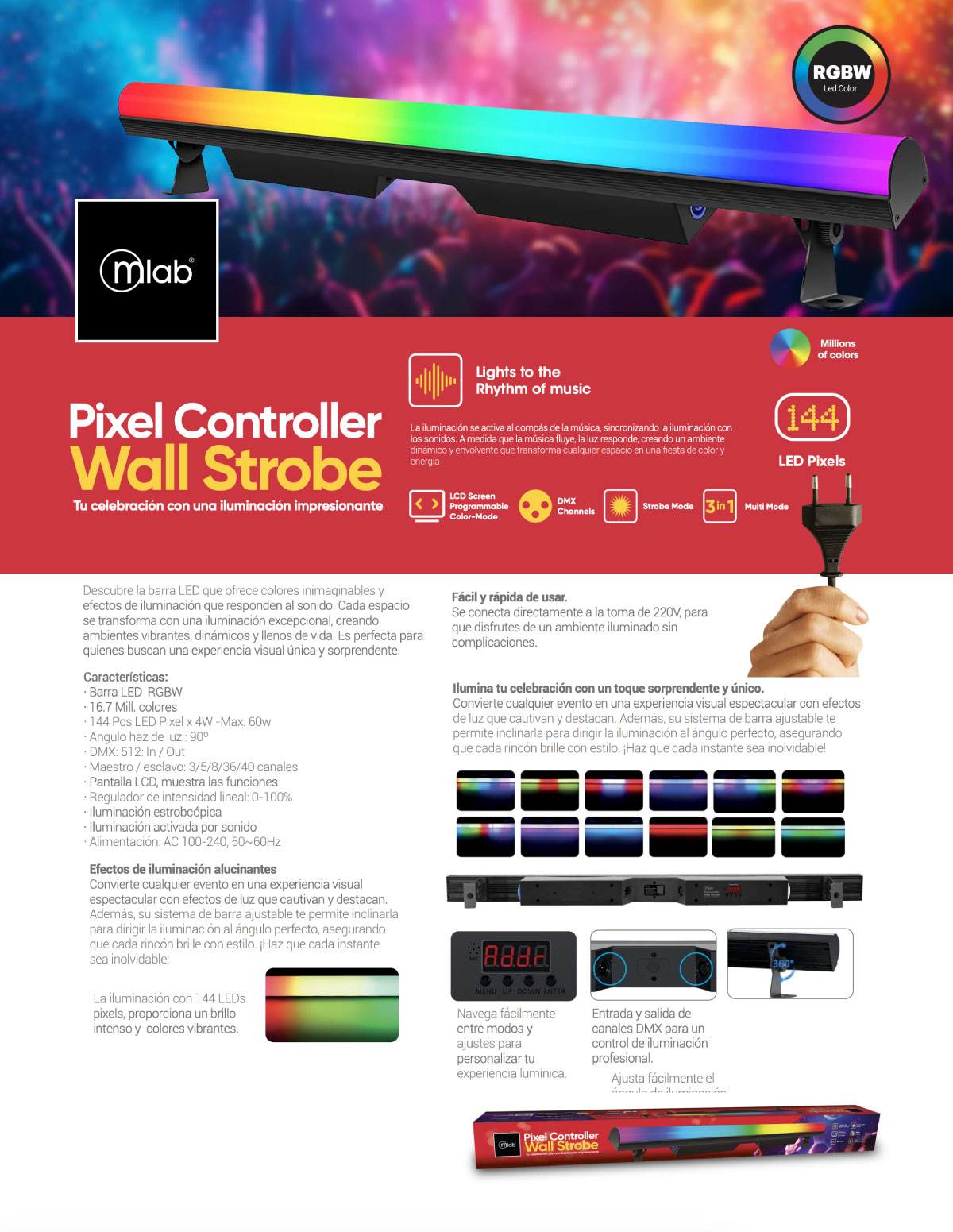 Descubre la barra LED que ofrece colores inimaginables y efectos de iluminación que responden al sonido. Cada espacio se transforma con una iluminación excepcional, creando ambientes vibrantes, dinámicos y llenos de vida. Es perfecta para quienes buscan una experiencia visual única y sorprendente.