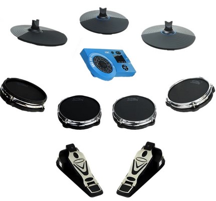 3. En el empaque encontrarás 7 cuerpos entre ellos: 3 Toms, 1 Caja, 3 Platillos (Hi-hat, Crash y Ride), 2 Pedales y baquetas.