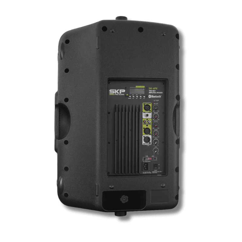 El SK 6PX Bk de SKP es un parlante activo que cuenta con un woofer de 15 pulgadas y entrega una potencia de 250w rms a 8 ohms. Su estructura es de plástico reforzado resistente y duradero, posee conexión vía bluetooth para reproducir la música que más desees desde un dispositivo móvil o Tablet. Además, cuenta con la opción de ser utilizado tanto como un parlante vertical como un monitor de piso debido a su corte en diagonal de 45°. El SK 6PX se diferencia de los otros parlantes, debido a que posee una salida potenciada speakon para conectar un parlante pasivo y su atril incluido de excelente calidad.