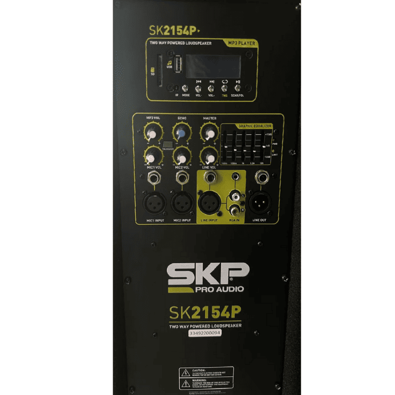 La SKP SK-2154P es una caja activa de rango completo de 2 vías diseñada para ofrecer un sonido potente y claro en diversas aplicaciones. Equipada con dos woofers de 15 pulgadas y un tweeter de 1.75 pulgadas, esta unidad proporciona una potencia RMS de 500W y una alta sensibilidad. Su amplia respuesta en frecuencia y las múltiples opciones de conectividad la hacen ideal para eventos en vivo, sistemas de PA o cualquier situación que requiera un audio robusto y de calidad.