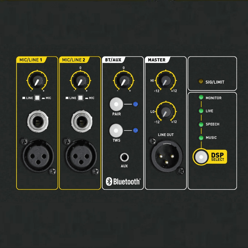 Su DSP integrado te permite configurar el parlante para distintas prestaciones, aumentando su versatilidad. Con conectividad Bluetooth para transmitir música desde tu móvil o tablet, y la tecnología True Wireless Stereo (TWS) para emparejar de forma inalámbrica otro Q12 MK2, creando un sistema estéreo completo sin cables.