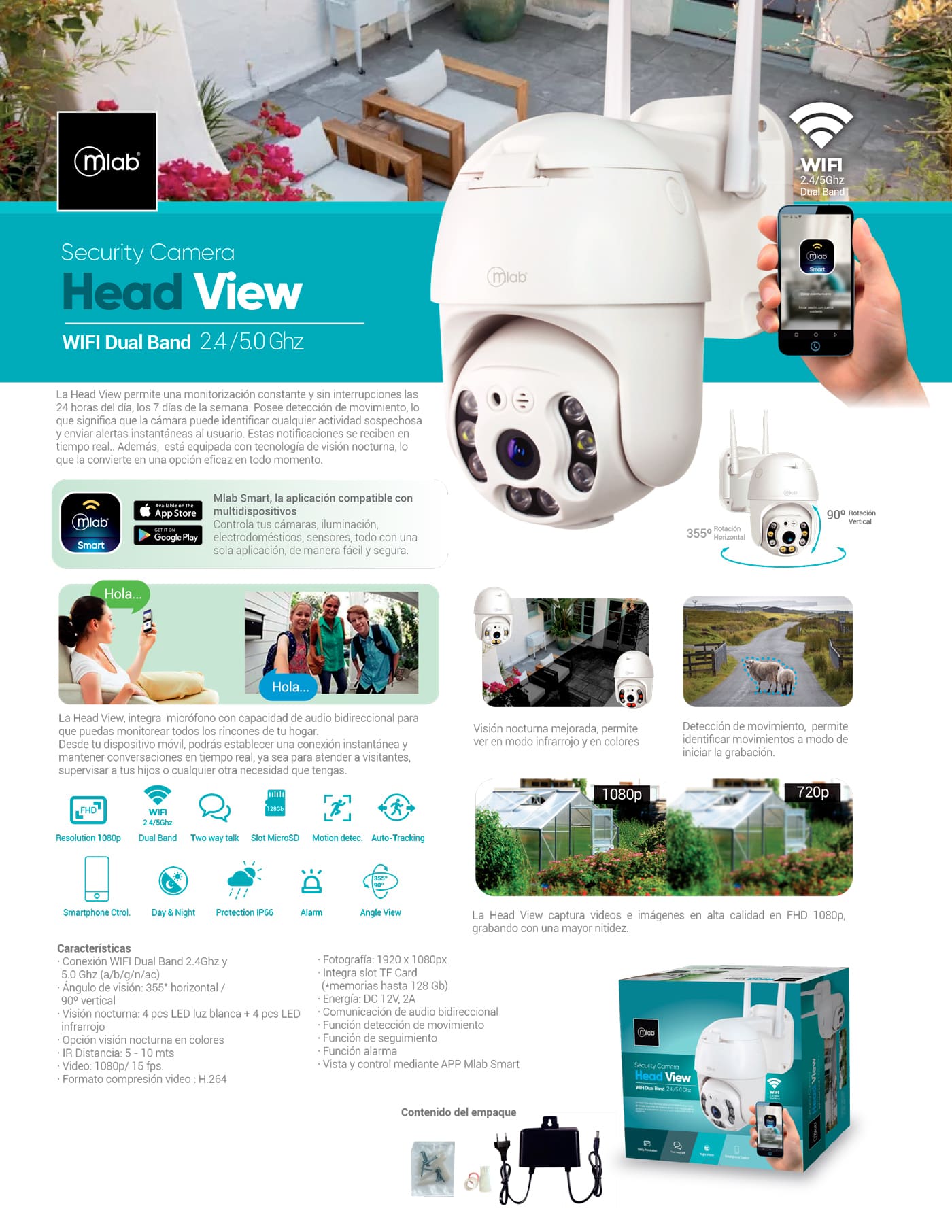La Head View ofrece monitoreo continuo 24/7 con detección de movimiento que envía alertas en tiempo real. Graba en alta calidad FHD 1080p y cuenta con visión nocturna, garantizando vigilancia efectiva en todo momento. Además, incorpora audio bidireccional, permitiendo comunicarte desde tu celular para supervisar tu hogar, atender visitas o cuidar a tus hijos.