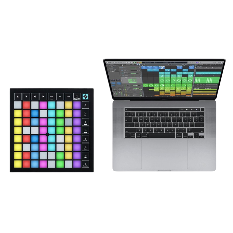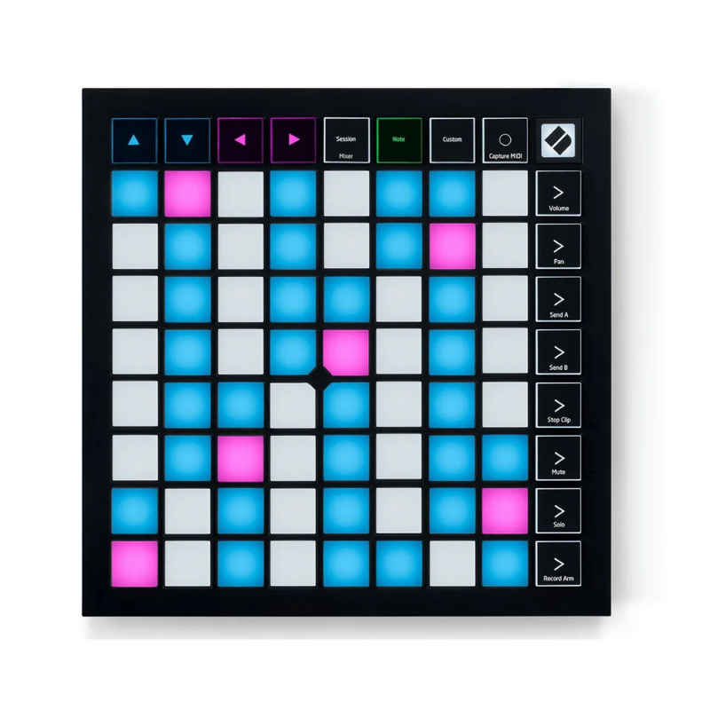 El Launchpad X es un controlador MIDI de cuadrícula de 64 pads esencial para Ableton Live. Te ofrece todo lo necesario para crear música. Lanza, reproduce, toca y crea tus melodías con sus pads RGB grandes y sensibles, los modos Dynamic Note y Scale y los controles de mezcla.