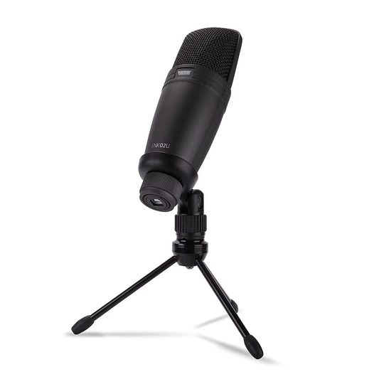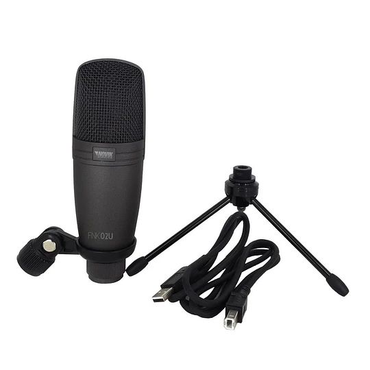 El FNK 02U es un micrófono de condensador USB para estudio profesional. Diseñado para ser utilizado en diferentes situaciones que requieren una respuesta de frecuencia plana, baja distorsión y claridad sonora. El FNK 02U es unos de los micrófonos más utilizados en ámbito de podcast ya que, te permite una fácil instalación y uso, además con su compacto diseño podrás llevarlo donde quieras. Incluye cable USB y trípode para escritorio.