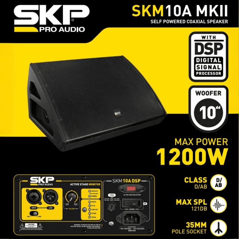 Descubre el poder del sonido con el monitor de piso activo SKP SKM10A MKII. Con una potencia de 350w RMS, cada nota y cada beat cobrarán vida, envolviéndote en una experiencia sonora sin igual. Su woofer de 10 pulgadas y altavoz coaxial biamplificado garantizan una claridad y profundidad excepcionales, transformando cualquier evento en un espectáculo memorable. Con un máximo SPL de 121dB, este monitor ofrece un control total sobre el audio gracias a su procesador DSP digital y amplificador de clase D/AB, que se adaptan a tus necesidades con preajustes para cada ocasión. Los indicadores LED te mantienen informado en todo momento, mientras que sus entradas versátiles permiten una fácil conexión y sincronización con otros equipos. El diseño ergonómico del SKP SKM10A MKII, con asas laterales para un transporte cómodo, y su construcción robusta pero manejable, lo convierten en el compañero ideal para músicos, DJs y aficionados al buen sonido. Prepárate para vivir la música como nunca antes.