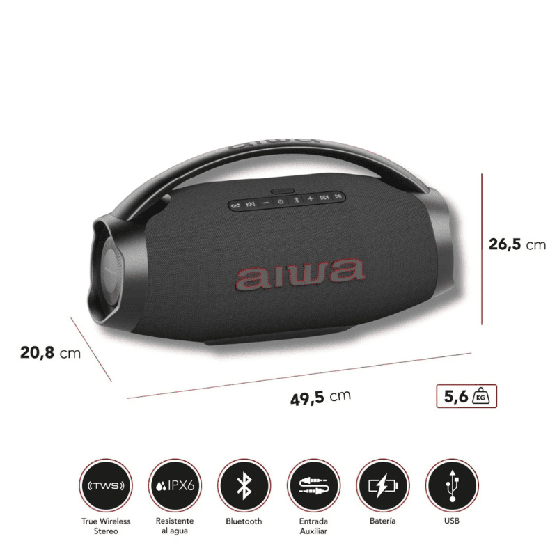 ¡Vive la fiesta donde quieras! El parlante boombox AIWA AW-H51BT te envuelve con 130W de potencia vibrante, conectividad TWS para el doble de energía, hasta 10 horas de ritmo imparable y resistencia IPX6 que desafía el agua. ¡Siente el poder, lleva la música contigo!