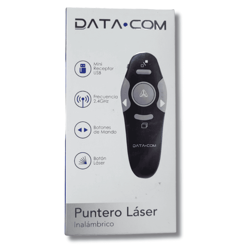 El Laser DataCom 54330 es un presentador inalámbrico de alta calidad, ideal para mejorar tus presentaciones profesionales de manera sencilla y efectiva. Equipado con tecnología láser, permite proyectar un puntero preciso y visible en pantallas o pizarras, resaltando puntos clave y facilitando la comunicación visual durante tus exposiciones. Su diseño ergonómico y liviano asegura comodidad en el manejo y facilidad de transporte, mientras que su alcance inalámbrico te brinda libertad de movimiento en la sala, sin restricciones de cables. Además, cuenta con funciones prácticas como botones para avanzar y retroceder diapositivas, una batería de larga duración y compatibilidad con diversos sistemas operativos y dispositivos, convirtiéndolo en una herramienta confiable para conferencias, clases y reuniones empresariales.