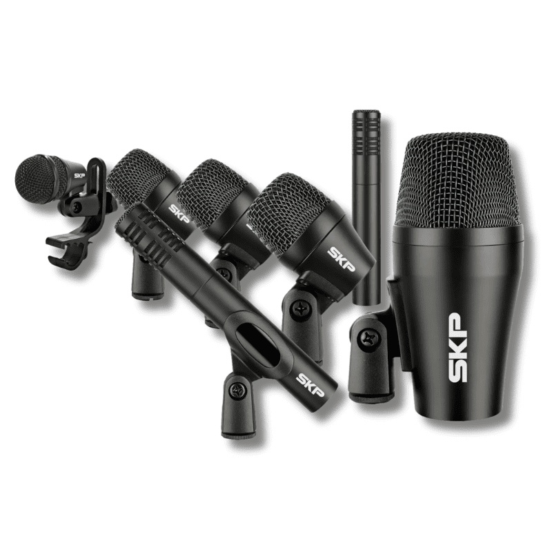 El DRUM 7 es un kit profesional de micrófonos diseñado para capturar con precisión todos los sonidos de una batería de 5 piezas. Incluye micrófonos dinámicos cardioides para el bombo, redoblante y toms, además de micrófonos condenser overhead para platillos. Su diseño compacto y clips integrados permiten una fácil colocación sin obstruir el movimiento del baterista. Conectados a través de cables XLR (F), ofrecen una señal de alta calidad ideal para grabaciones y presentaciones en vivo.