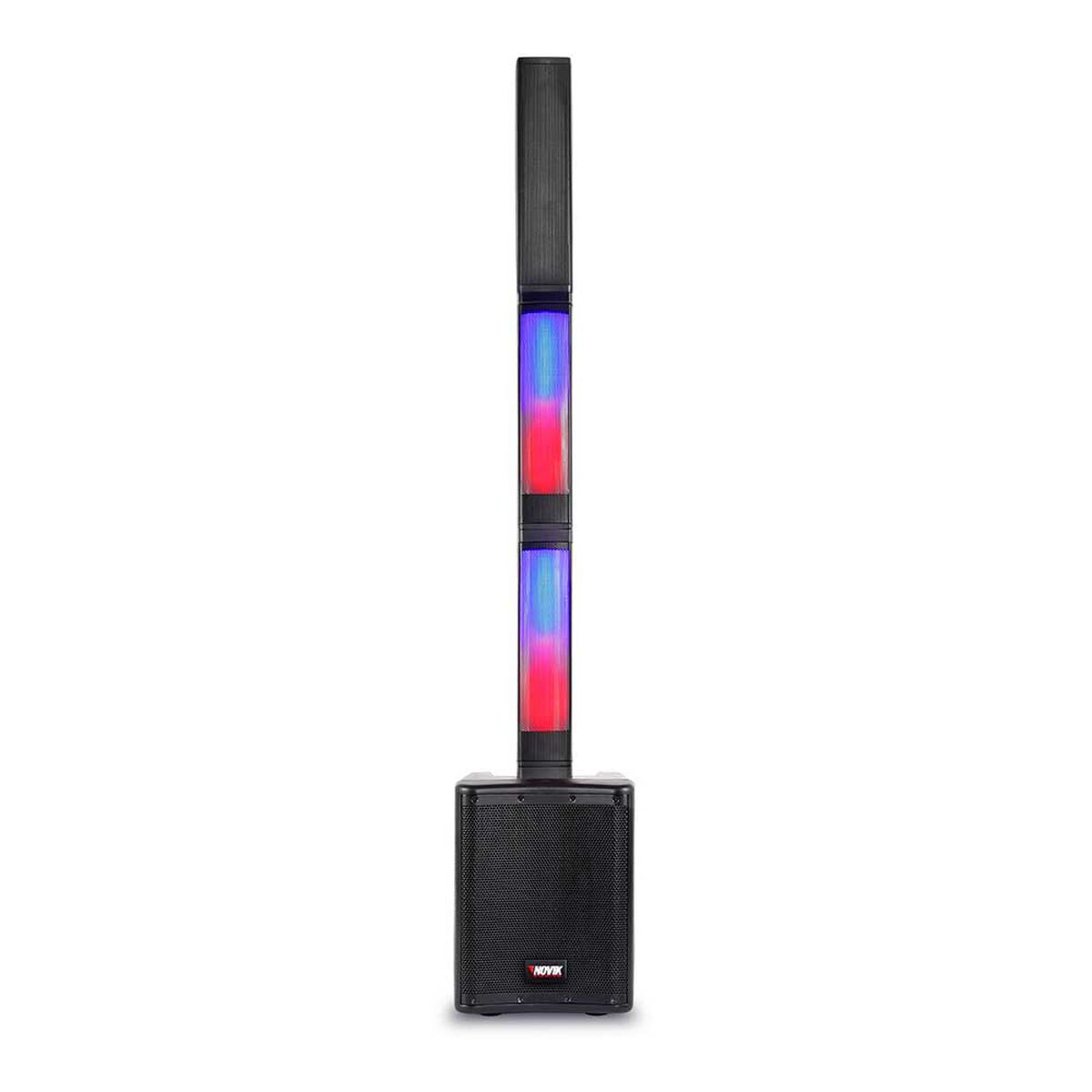 • El NOVIK Neo STAGE-8 PRO es un sistema de audio portátil que ofrece excelente calidad de sonido y alta cobertura. Su diseño compacto facilita el transporte y cuenta con 3 columnas desmontables con luces LED RGB y un subwoofer de 8 pulgadas.