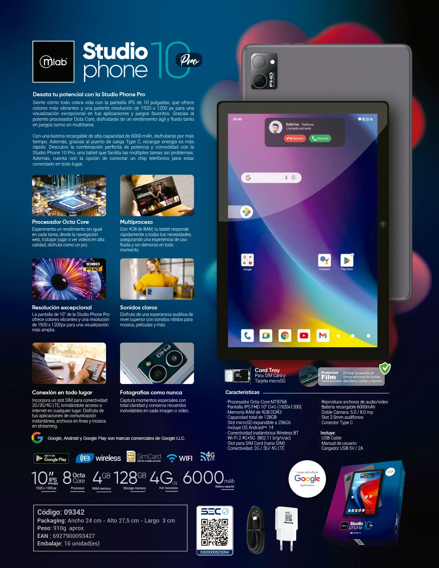 Con una batería recargable de alta capacidad de 6000 mAh, disfrutarás por más tiempo. Además, gracias al puerto de carga Type C, recargar energía es más rápido. Descubre la combinación perfecta de potencia y comodidad con la Studio Phone 10 Pro, una tablet que facilita las múltiples tareas sin problemas.