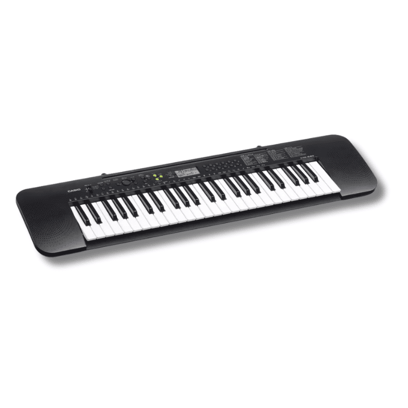 El CTK-240 tiene 49 teclas estándar, lo que lo convierte en una excelente opción de instrumento de inicio para los primeros pasos en la música. 100 tonos, 100 ritmos y 50 canciones son perfectos para clases de música instructivas y divertidas.