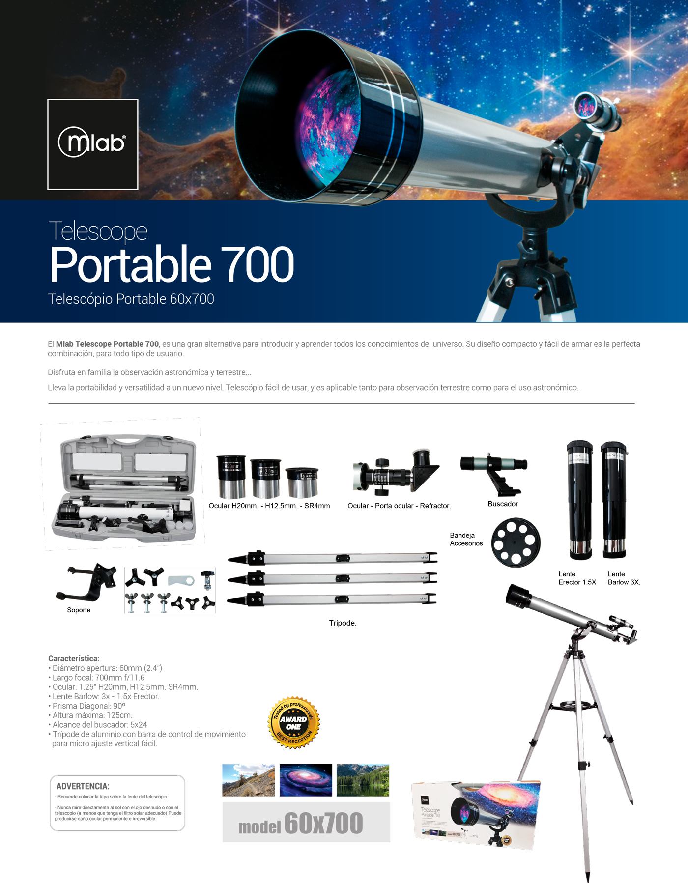 El telescopio 60X700 una gran alternativa para iniciar y aprender todos los conocimientos del universo. Su diseño compacto y fácil de armar es la perfecta combinación, para todo tipo de usuario. Disfruta en familia la observación astronómica y terrestre…