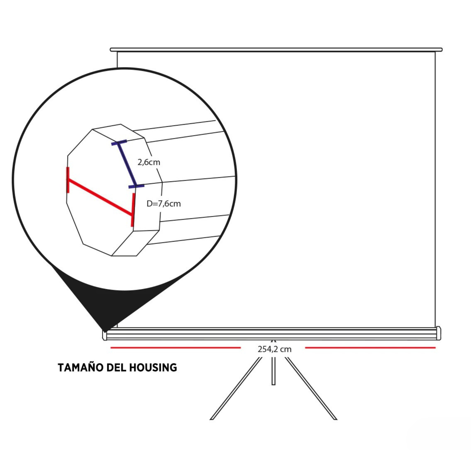 • El área de proyección de esta pantalla de 135” es: 2,40 X 2,40.
